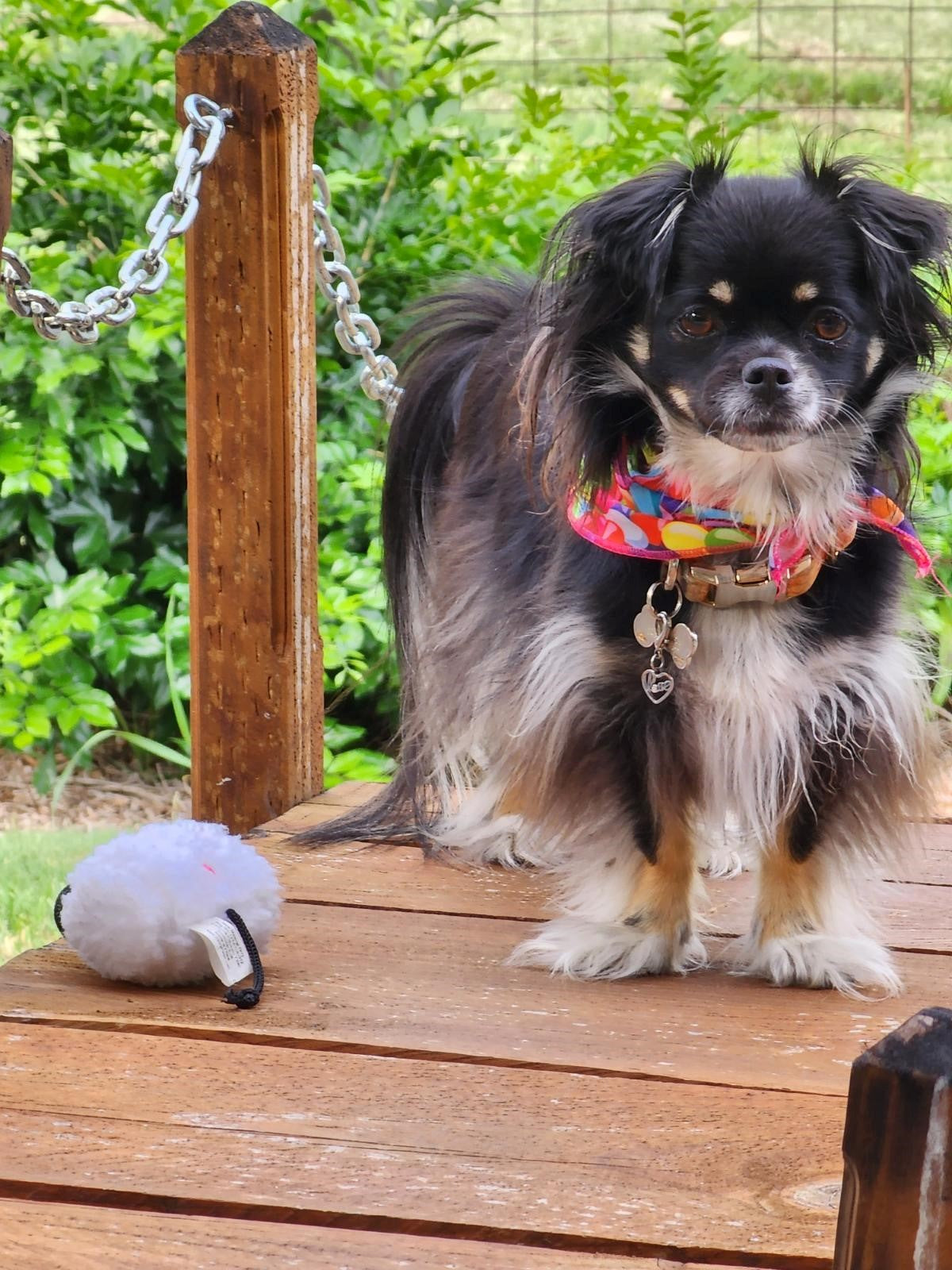 Favourite things to do: Bark at anything, play with her favouite toy and above all EAT!